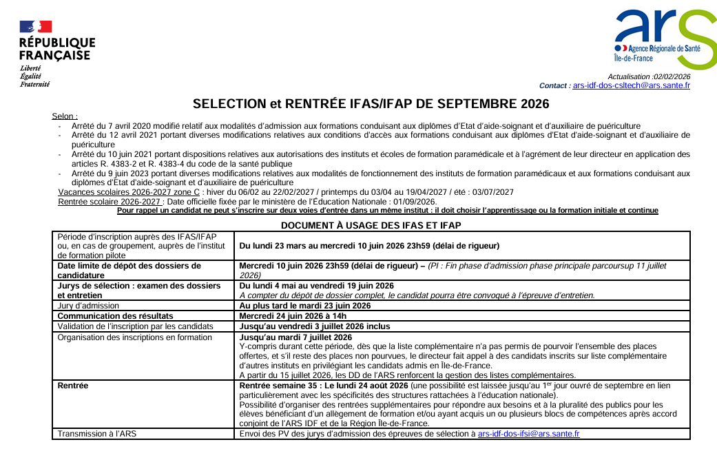 sélection entrée IFAP septembre 2026 INFORMATION AUX CANDIDATS_